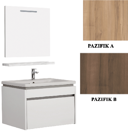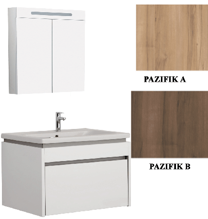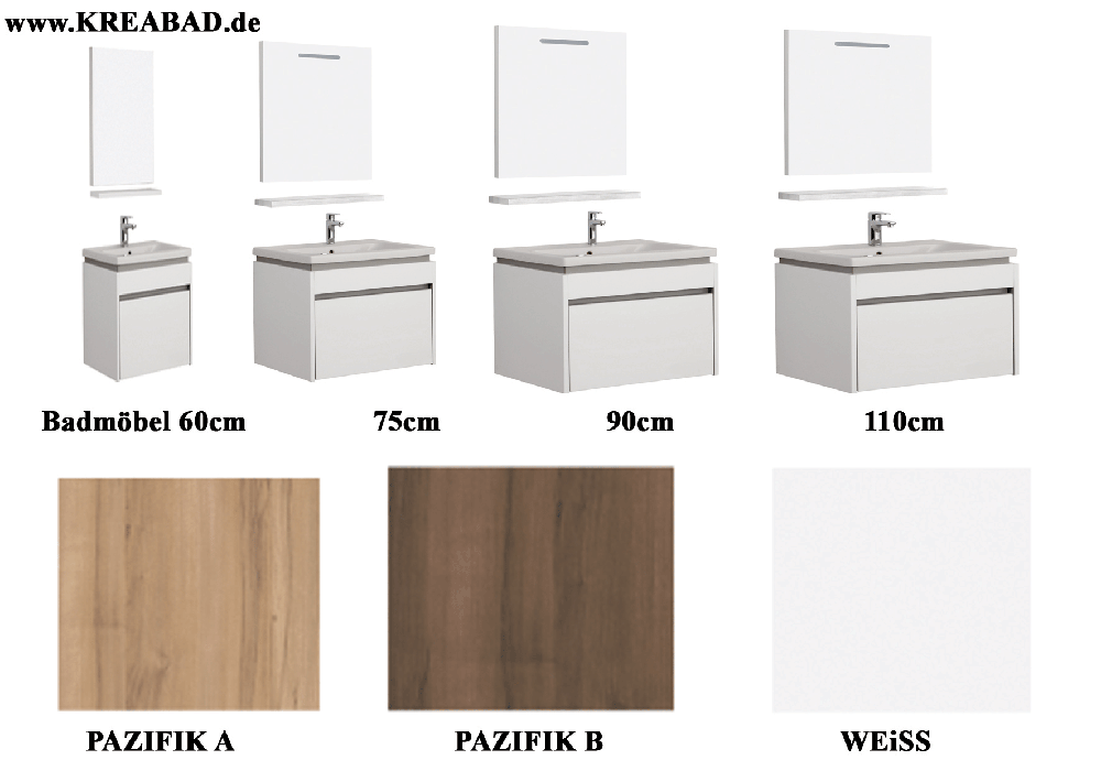 | | Badmöbel Idea mit Waschtisch und Spiegelschrank Hochglanz Weiß, Pazifik A oder Pazifik B