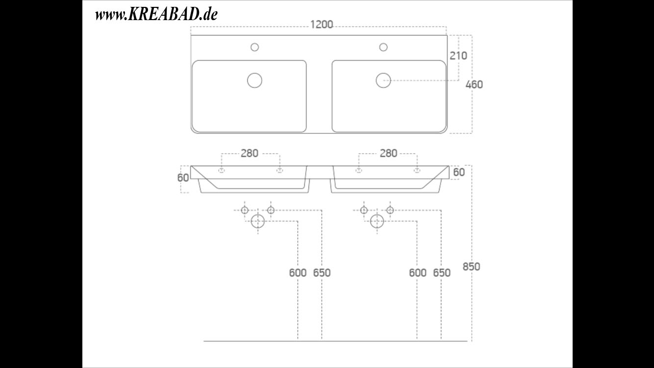 Doppelwaschbecken Doppelwaschtische  | |  | |  | Luccia 120x46cm Doppelwaschbecken Luccia Download Skizze