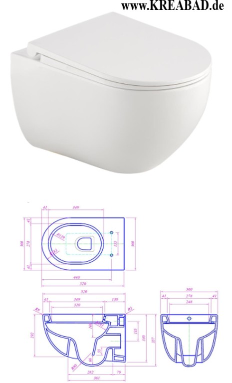 Luxus Designer Wand Wc mit verdeckten Wc Befestigung und Soft Close Wc Sitz